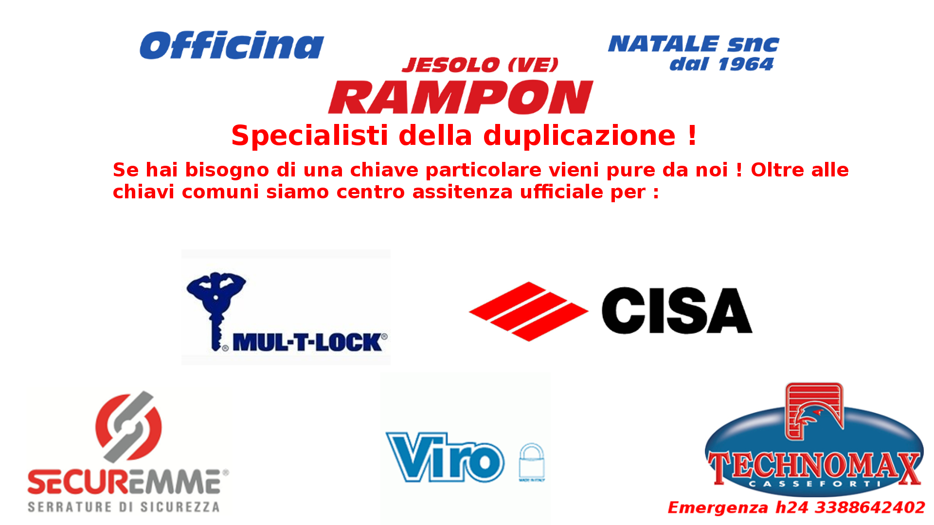 Siamo centri assistenza ufficiali per Cisa , Mul’t’lock , Securemme , Viro e Tecnomax con più di cinquant’anni di esperienza sul campo!