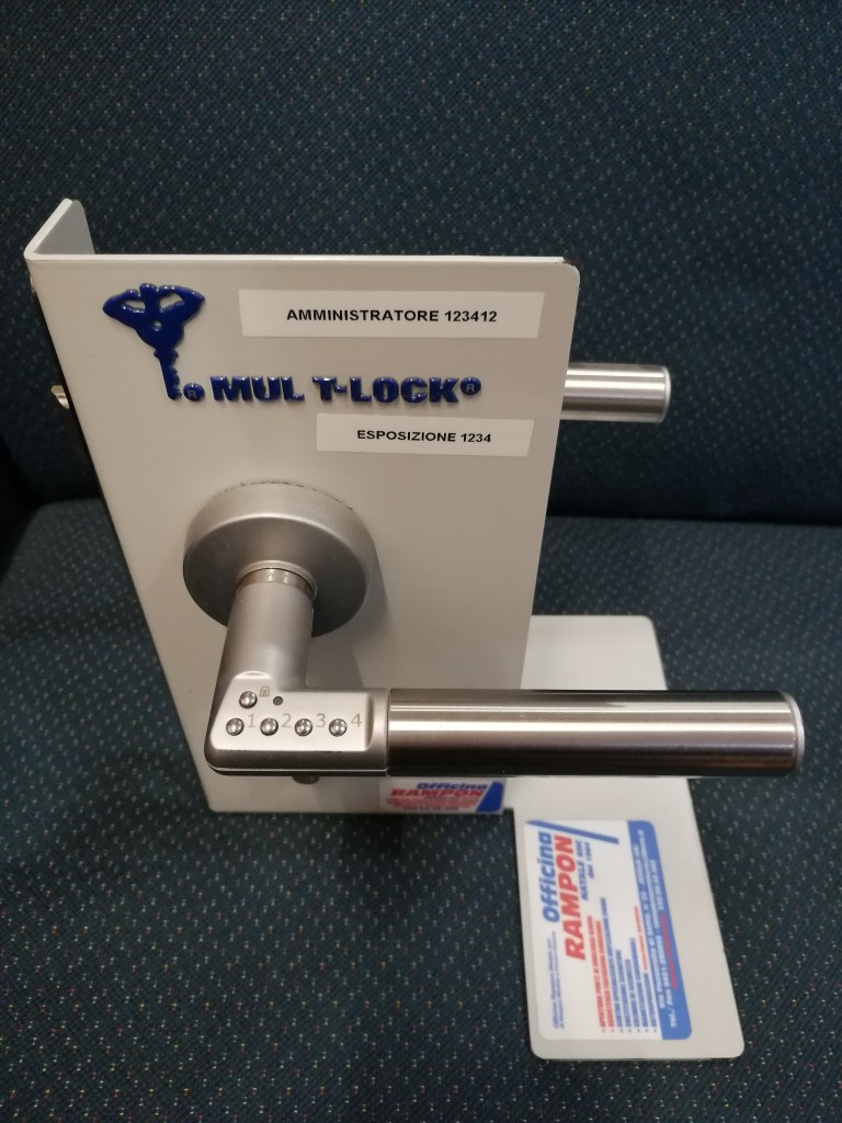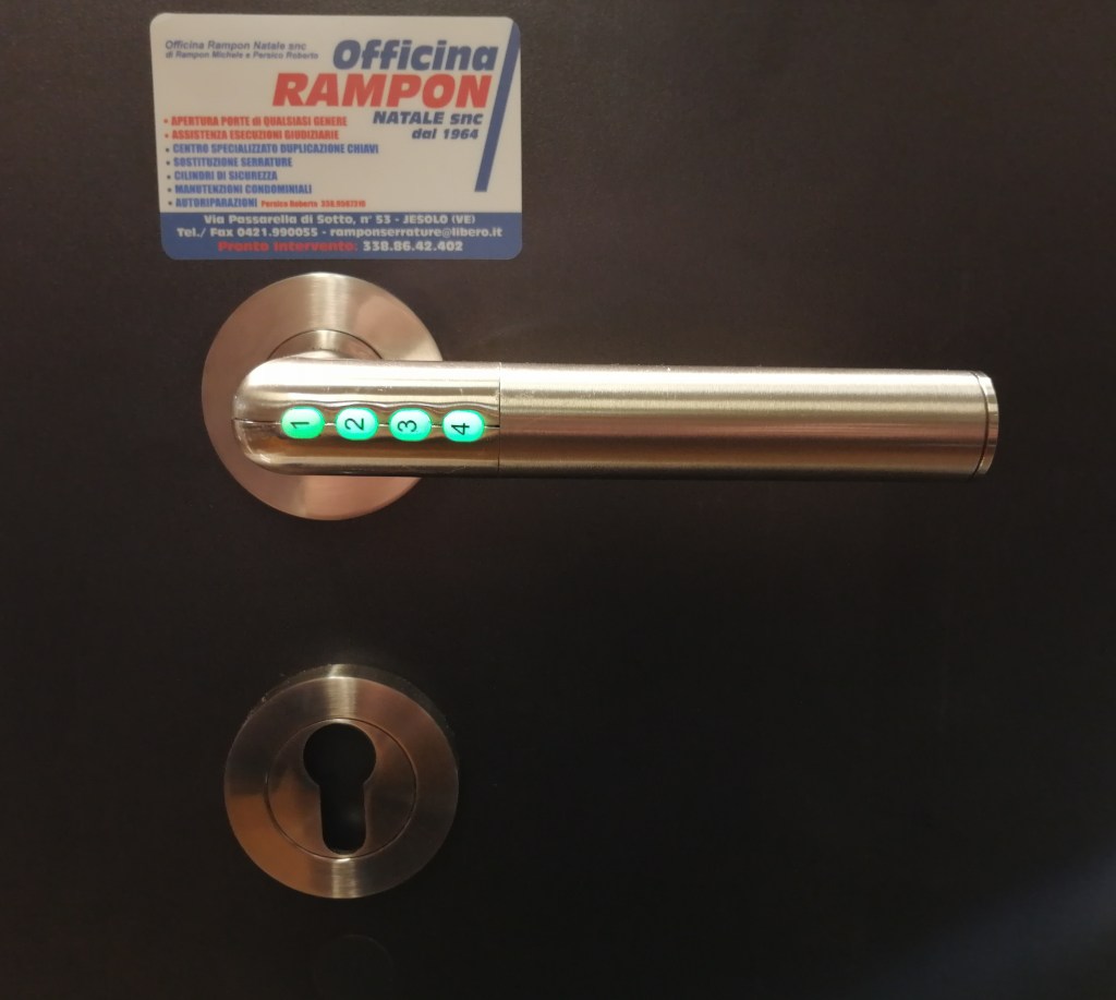 Code-it è la soluzione a questo problema in casa Mul’t’lock : questa maniglia elettromeccanica richiede un codice di 4-6 cifre per azionarsi ed aprire la porta.